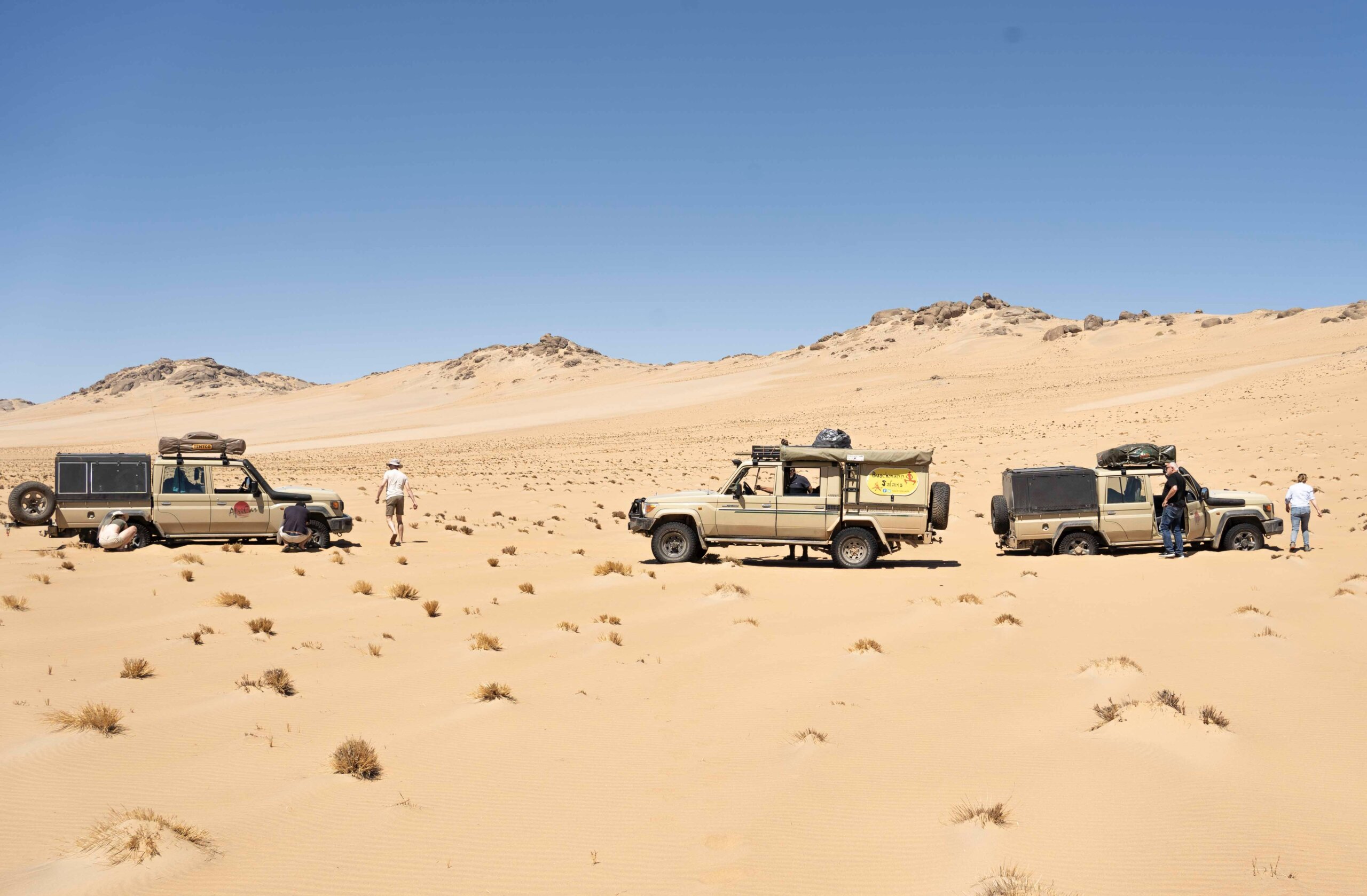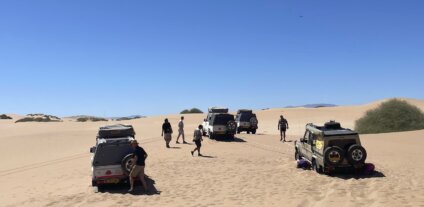 W czasie programu podróżujemy samochodami terenowymi Toyota Land Cruiser. Nasza trasa wymaga umiejętności jazdy terenowej. Samochody są wyposażone w namioty dachowe oraz niezbędny sprzęt kempingowy, w tym sprzęt do samodzielnego gotowania. Pierwszym samochodem jedzie leader zespołu Sławek Makaron Makaruk wraz z lokalnym przewodnikiem, pozostałe samochody prowadzone są przez uczestników wyjazdu. W każdym samochodzie mamy minimum 2 osobową załogę. Maksymalnie 4 osoby w aucie.